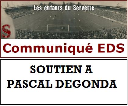 Suite à l’article d’Olaf sur grenats.ch(http://www.grenats.ch/servette/index.php?idContenu=dActualite&idArticle=6423&lang=FR) concernant l’interdiction de stade frappant Pascal Degonda et les frais de justice à payer par son père, la rédaction des EDS tient à se montrer solidaire de cette initiative.