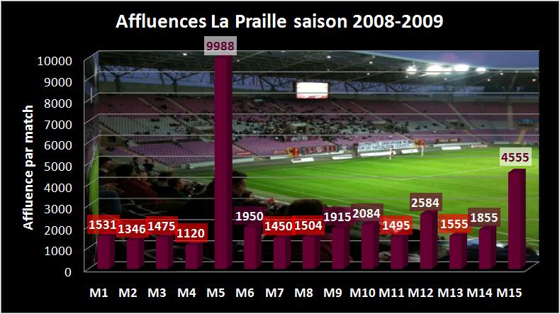 • La saison 2008-2009 restera une des pires saisons avec 2’427 spectateurs de moyenne ( 1’887 sans le match contre Lausanne)
