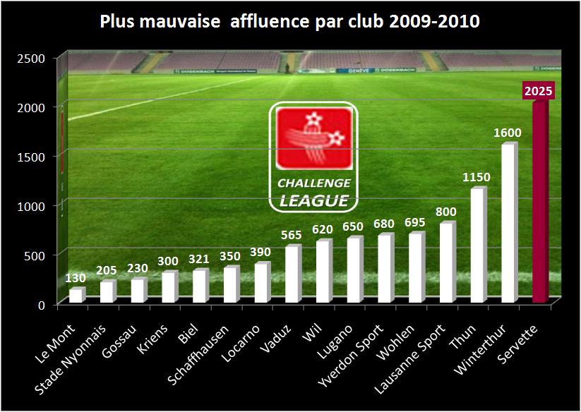 - Mis à part Servette, l’ensemble des équipes de la Challenge League ont connu une certaine stabilité dans les affluences 2009-2010