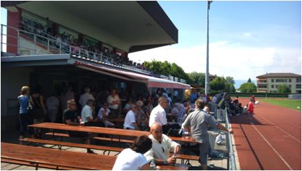 La tribune principale (bon c’est un bien grand mot…) du stade municipal de Payerne