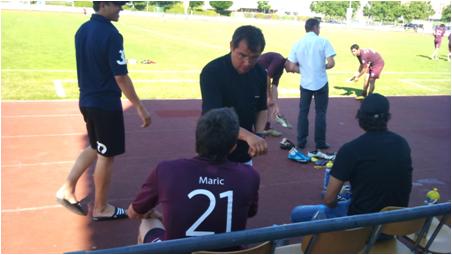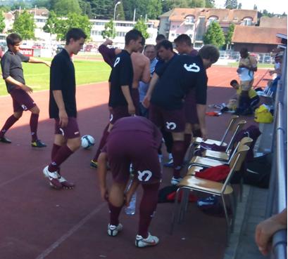 A noter à l’attaque, la présence de 2 nouveaux joueurs à l’essai. Le numéro 33 est un véritable géant. Il s’appelle Stefan Nater et vient de Schaffhausen. Il est milieu offensif.