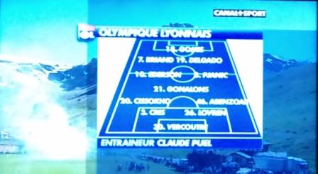 OL (1ère mi-temps) : Vercoutre, Abenzoar, Cris, Lovren, Cissokho, Gonalons, Pjanic, Ederson, Delgado, Gomis, Briand.