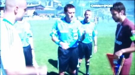 - le maillot blanc bordé de grenat du staff lyonnais du plus bel effet!