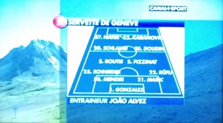 Servette (1ère mi-temps) : Gonzales, Schneider, Mendes, Maric, Rüfli, Routis, Pizzinat, Schlauri, Doudin, Nater, Karanovic.