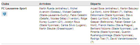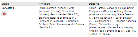 Le vaudois que je suis (ben oui, personne n’est parfait!) se réjouit au plus haut point que le club de la cité lémanique, en périphérie du Lac de G’nève, puisse jouer les premiers rôles. Lausanne s’est renforcé pendant la pause en libérant des joueurs moyens (à part le gardien Débonnaire et Rodrigo Tosi) et en engageant les joueurs dont le club avait besoin. Silvio fera le plus grand bien devant en dynamitant un peu les offensives vaudoise et Celestini devrait être le régulateur du milieu de terrain. Lausanne possède une jolie équipe qui allie surtout la jeunesse (Borges, Buntschu, Katz) mais aussi l’expérience de vieux briscards (Celestini, Meoli, Marazzi, Favre, Steuble), à voir si cela pourra tenir toute la saison…. La pontaise pourrait donc bien vibrer à nouveau avant de passer à la moulinette…