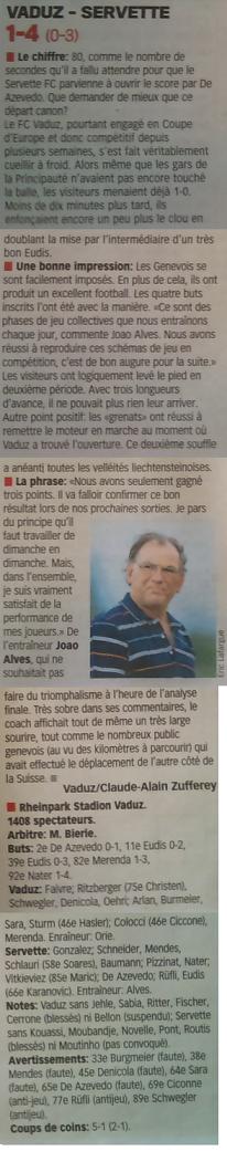 Découvrez ci-dessous l’article du matin consacré au match de dimanche entre Vaduz et Servette :