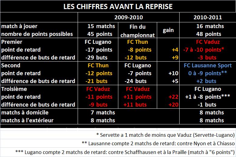 – Les écarts, entre les équipes, peuvent largement varier selon les résultats des matchs en retard (Servette:1, Lausanne et Lugano:2).