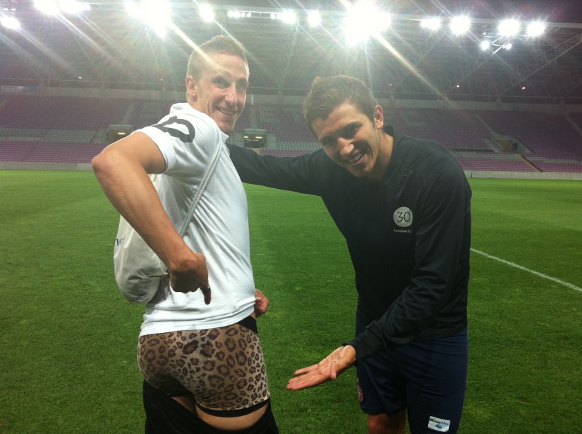 Vincent Rüfli: Ha ha (ndlr : il s’écroule de rire et nous montre le fameux boxer !!!), c’est sexy ! C’est pour aller avec les chaussures « zèbre » !!!