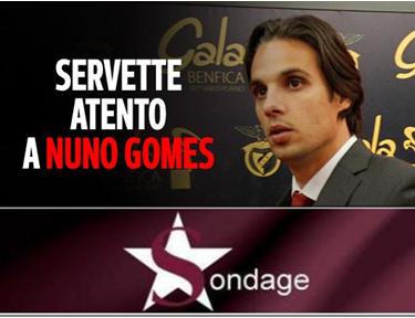 Nuno Gomes quitte définitivement Benfica aujourd’hui. Cette nouvelle a fait grand bruit au Portugal. Si Braga tient la corde pour récupérer l’excellent attaquant de 35 ans, notre nouveau Directeur Sportif n’a pas exclu l’arrivée de Nuno Gomes sous les couleurs servettiennes!! Qu’en pensez vous?
