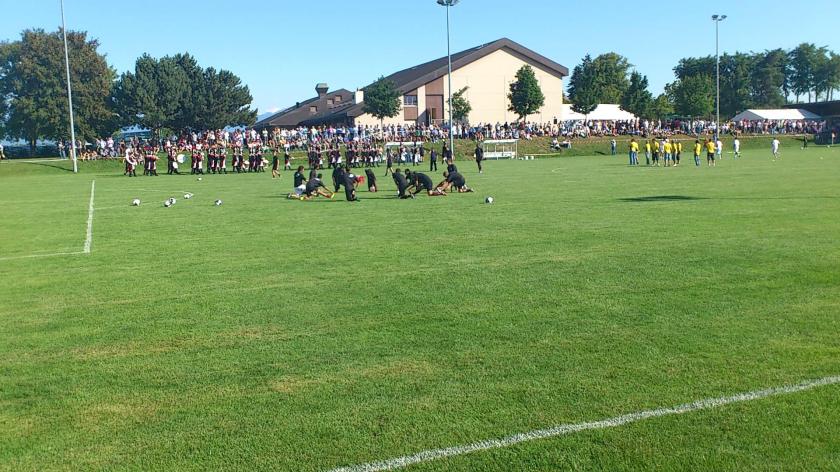18h14: L’équipe est à l’échauffement. Il y a beaucoup de monde sur place. Au moins 2’000 spectateurs sont attendus.