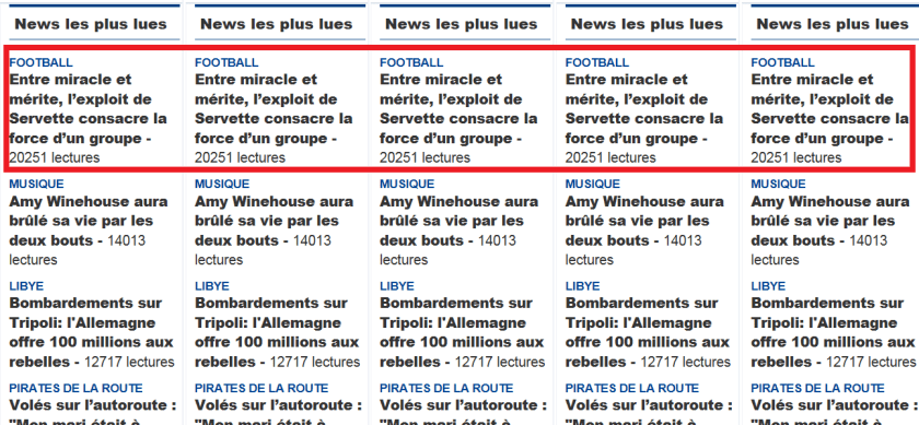 Le Servette FC refait parler de lui…en bien. Fini Marc Roger. Après l’exceptionnel final du 31 mai dernier, le SFC truste à nouveau la première place puisqu’hier soir plus de 20’000 personnes avaient lu l’article de la TDG mis en ligne depuis lundi matin !