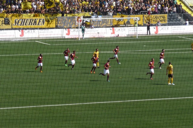 En moins de 5 minutes, le score du match était déjà, sans le savoir, scellé. Dès la 2ème minute, l’arbitre accorde un coup-franc (inexistant) à Berne et Schneider dévie malheureusement le ballon dans les filets de Gonzo. Mais deux minutes plus tard, Eudis se heurte à Wölfli qui ne parvient pas a capter le ballon alors que Vitkieviez en profite pour égaliser !