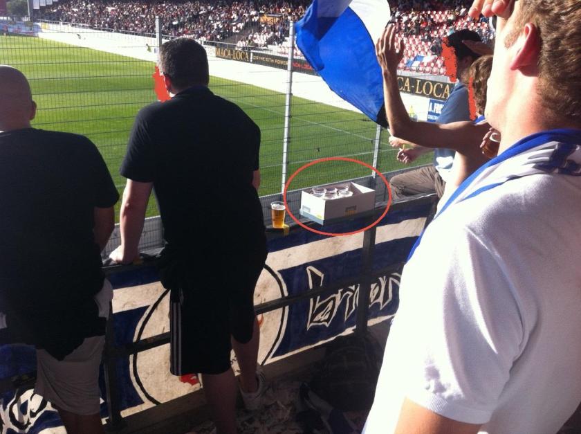Détail croustillant. Les cartons à bière sont des vieux cartons à chaussures, dommage que Dosenbach ne soit plus sponsor de la Challenge League, sinon la place du FC CONstantin aurait été toute trouvée…
