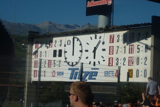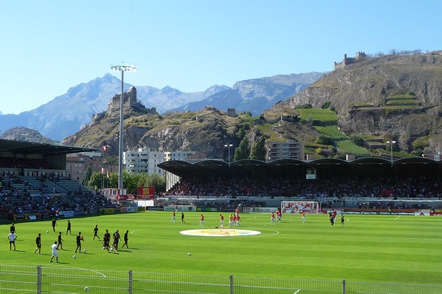 L’arrivée à Tourbillon ressemble à… pas grand-chose. Des montagnes, des collines d’herbe et le stade !