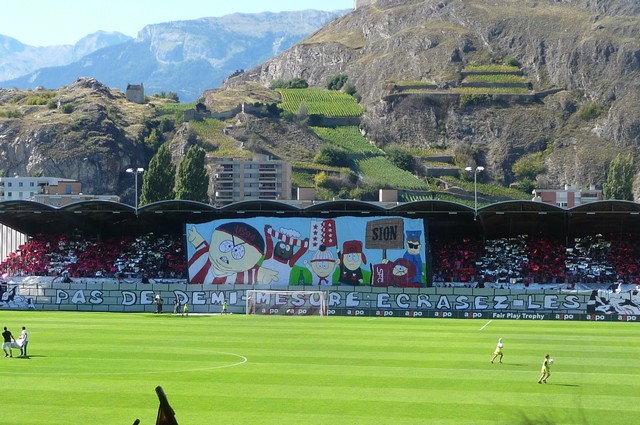 Sion aura sorti les grands moyens au niveau du tifo. La Section Grenat quant à elle n’aura pas eu le temps d’installer le sien…