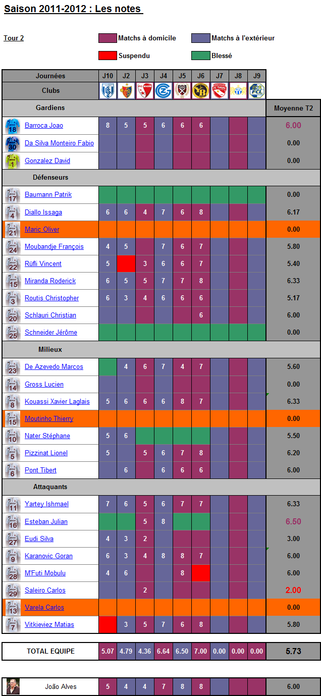 Rappels importants pour nos fidèles lecteurs : cette évaluation et le barême qui y est lié sont à situer dans le contexte du championnat suisse. Par exemple, si un joueur a obtenu la note 9 au sein d’un match de SL, cela ne veut pas dire que sa performance hériterait de la même note si elle était réalisée de manière identique au sein d’un match de Liga espagnole par exemple (1). Autre élément à prendre en considération : la note d’un joueur est toujours subjective, et image sa performance sur ce match-là en particulier. Ce n’est donc pas un jugement global sur le joueur. Celui-ci peut obtenir ainsi un 9 un week-end, et un 2 la fois suivante, sans que cela ne remettre en question son potentiel de fond ainsi que sa valeur de base. Il se peut en effet qu’un joueur réalise un grand match, puis passe à côté la fois suivante, cela dépendant de tellement de paramètres. Si Joao Alves obtient un 9 une fois, puis le week-end prochain un 3, cela ne veut pas dire que sa note n’est qu’uniquement dépendante du résultat ou que notre druide est subitement devenu un coach incapable.