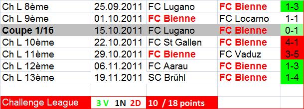 • Les Biennois n’ont gagné que 2 fois à domicile cette saison et la dernière victoire remonte au 12 Septembre contre Chiasso