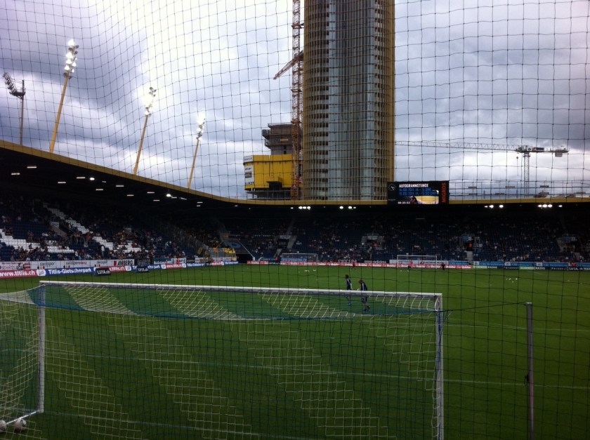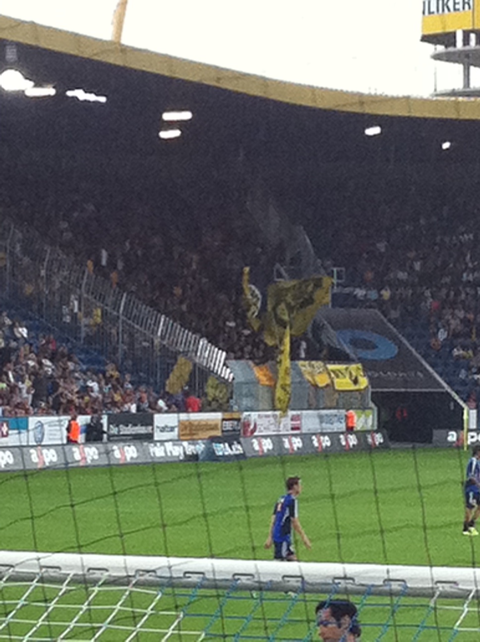 Le stade est de bonne taille et agréable, c’est évidemment un vrai stade de foot sans anneau d’athlétisme et il offre donc une bonne proximité avec les joueurs. Par contre derrière les buts les tribunes sont très plate et pas très haute. La perspective n’est donc pas excellente et on a de la peine à juger la profondeur. Difficile de juger les hors-jeu.