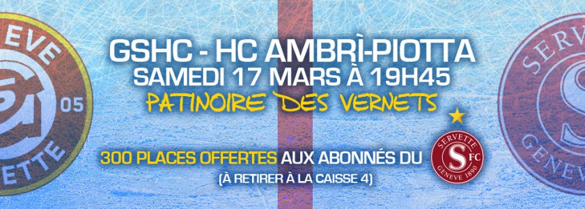 300 places offertes pour GSHC-Ambri (samedi 19h45) aux abonnés du SFC (1 place par personne, caisse 4)