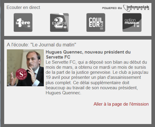 Hugues Quennec était l’invité hier matin pendant une dizaine de minutes du journal du matin sur la RTS.