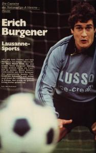 Haut-valaisan, Eric Burgener débute sa carrière au FC Rarogne. Le FC Sion lui fait les yeux doux, mais l’ancienne légende Frank Séchehaye le convainc d’opter pour Lausanne qui, aux débuts de la décennie 1970, lui offrait plus de perspectives footballistiques que le club du chef-lieu valaisan. Erci Burgener réussit son baptême du feu avec le LS contre Zurich le 16 aoùt 1970, mais malheureusement pour lui, il encaisse 5 buts le week-end suivant à Tourbillon et devra refaire un bref séjour sur le banc avant de s’imposer définitivement. En juin 1973, il fait même ses débuts en équipe nationale dont il devient rapidement l’indiscutable numéro 1. En 1977, alors que Lausanne végète dans le tour contre la relégation, Servette commence à s’intéresser à lui mais renonce à débourser le demi-million nécessaire à son transfert. Voyons comment il avait tapé dans l’oeil des recruteurs grenat.