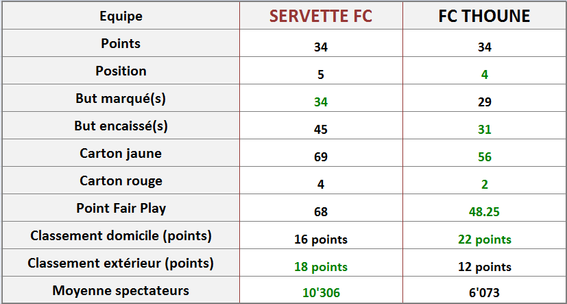 Thoune reste sur deux défaites et se doit de gagner ce match pour rebondir au classement pour ne pas laisser Servette leur passer sous le nez.