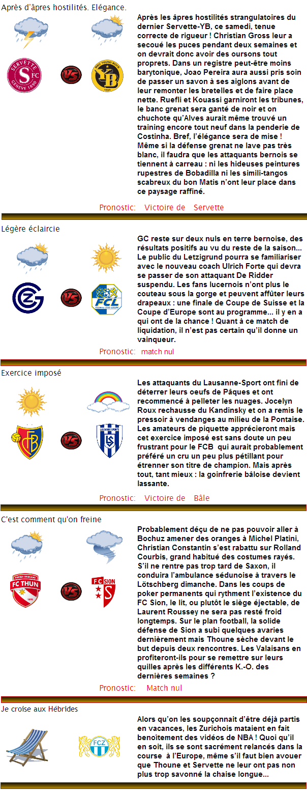 Le championnat de Suisse actuel a permis l’éclosion d’une forte contre-culture juridico-administrative avec des épicentres à Muri et à Sion et des ramifications à travers différentes salles d’audience du pays. Le calendrier est souterrainement modifié : les matchs ont toujours lieu le week-end, mais les résultats importants tombent durant la semaine ; dans l’ombre des bureaux, se profilent des redécoupages, des écrémages, des redistributions….