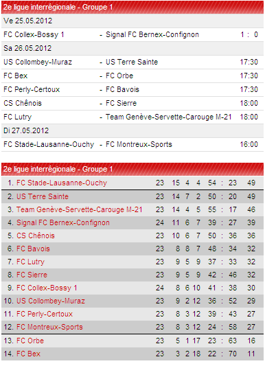 Nos jeunes ne sont pas en reste puisqu’ils sont 3 ème au classement à 3 matchs de la fin du championnat. Les « jeunots », qui ne comptent que 3 points de retard sur les deux premiers, restent sur une victoire 6-0 à domicile face à l’US Collombey-Muraz. Ce match revêt donc une grande importance pour les M21 qui recevront à Balexert l’actuel leader du Stade-Lausanne Ouchy samedi prochain pour l’avant-dernière journée de championnat! Notez que le dernier match de la saison opposera les deux premiers du championnat, ce qui pourrait permettre à nos M21 de coiffer ses deux conccurents au poteau!