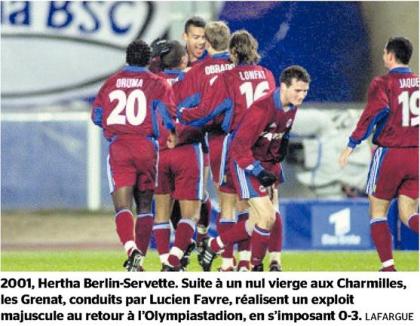 « Comme en 1981, avec l’élimination de Slavia Prague, de Saragosse et de Hertha Berlin: » c’est pas une erreur? on parle de 2001 sous lucien favre non? qqun peut il m’iluminer?