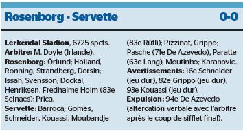 Les ultimes tentatives de Pizzinat ou de Rüfli sur des tirs pas cadrés ne changeront rien au tableau d’affichage. C’est donc sans perdre contre Rosenborg, mais victime de ses difficultés à se créer et à transformer des occasions que Servette quitte la scène européenne. Rosenborg n’avait sans doute rien de folichon. Mais le Servette d’aujourd’hui, si fébrile offensivement, n’a pas eu les moyens d’en profiter.