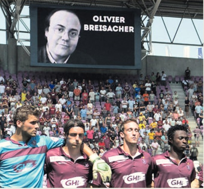Touché par la disparation tragique de notre collègue et ami Olivier Breisacher survenue la semaine dernière, le Servette FC a tenu, hier, à lui rendre un hommage émouvant à travers une minute de silence observée avant le coup d’envoi du match contre le FC Zurich (photo Eric Lafargue) . Rappelons qu’Olivier, passionné d’échecs, travaillait depuis douze ans à la Tribune de Genève  et avait notamment couvert de très près l’actualité du Genève-Servette Hockey Club et du Servette FC. L’émotion était palpable sur et en dehors du terrain, notamment sur le visage du défenseur grenat Vincent Rüfli, qu’Olivier avait longuement rencontré lors de la saison de la promotion afin de lui consacrer un portrait. Nul doute que tous auraient souhaité lui dédier une victoire. Salut Oli, salut l’ami! A.CE.