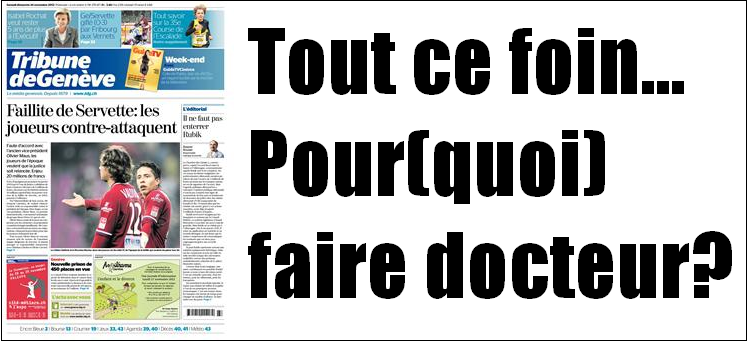 Dans la TDG du jour, Servette est en première page et le journal genevois a décidé de parler de ce match pour soutenir le club, car en tant que partenaire média, la TDG veut soutenir le Servette FC. Mais non une fois, et même non deux fois, cela se passerait comme cela dans un monde idéal, dans le monde des Bisounours, Car si Servette est en première page aujourd’hui, ce n’est pas pour soutenir le football genevois, ni pour parler de la relève, mais pour revenir sur la faillite du club datant de l’ère Marc Roger.