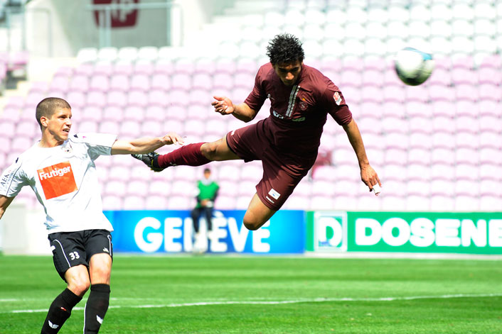 En première mi-temps, l’emprise servettienne sur le match est totale. Asphyxié, Thoune concède deux buts. Le premier est consécutif à une action d’école comme il était impensable d’en rêver au premier tour: Schneider décale De Azevedo qui contrôle et expédie un centre instantané repris d’une formidable tête plongeante par Eudis.