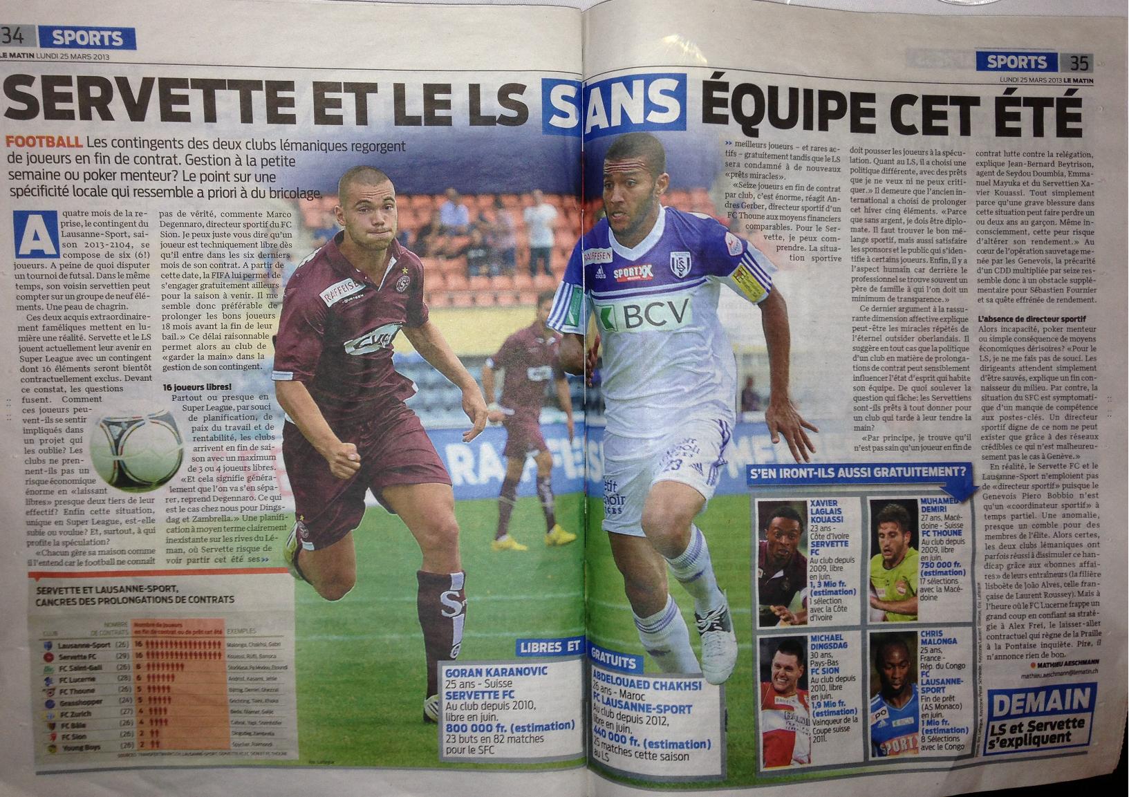 L article complete parfaitement cette premiere impression par l analyse du directeur sportif de Thoune et de l agent de Kouassi à qui l on ne pourra jamais reprocher de s etre eparge par peur d une blessure…