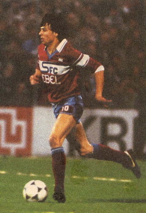 Formé dans le canton de Vaud au FC Oulens, Lucien Favre gravit ensuite doucement les échelons du football romand : Lausanne-Sports, Xamax puis Servette. A l’été 1981, le président Carlo Lavizzari offre un recrutement ambitieux et pléthorique au club grenat qui vient de vivre une misérable saison : avec le gardien Eric Burgener, le défenseur central Alain Geiger et les demis Lucien Favre et Michel Decastel et l’attaquant Angelo Elia, il offre carrément un joli quintette d’internationaux en puissance au SFC ! Dans l’entrejeu se met alors en place un alliage diablement performant et complémentaire : Marc Schnyder prend en charge les tâches plus défensives, Michel Decastel joue le rôle de poumon et Lucien Favre crée et oriente le jeu. Tous les membres de ce trio sont dotés d’une solide technique (avec une mention spéciale pour Lucien Favre) et sont en mesure de se projeter en attaque et de marquer régulièrement, une constellation au service d’un jeu offensif et spectaculaire. Un Servette fringant survole le premier tour du championnat avant qu’au printemps, minée par divers tracas (virus contracté en Afrique, éviction de trois anciens, frictions autour du banc de touche, cf. Notre chronique « Gare au virus »), l’équipe perde de sa superbe et se fasse doubler par les Grasshoppers.