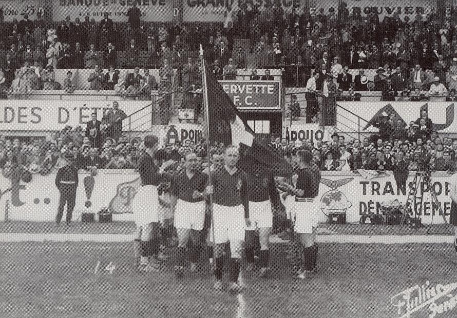 Le lendemain, une explosive confrontation entre les Allemands du SpVgg Fürth (champion en 1929) et les Français de Sète (vainqueurs de la Coupe en 1929) est programmée. Le public romand, farouchement francophile, prend fait et cause pour les Sétois mais bien vite, les Allemands aussi gagnent les sympathies du public tant le jeu est correct et animé. Un jour avant le retrait des troupes françaises de Rhénanie, les observateurs se plaisent à relever l’esprit très “Société des Nations” de la rencontre entre des ressortissants de deux pays ayant plutôt tendance à se vouer mutuellement aux gémonies. Le match accouche finalement d’un vainqueur grâce à un but en or des Bavarois … à la 140ème minute ! La suite est à l’avenant : de beaux matchs où les formations d’Europe Centrale démontrent une belle supériorité, un public nombreux… Pour la première fois, le jet d’eau est illuminé : c’est la fête des fleurs ! Les perdants des premiers jours s’en voient d’ailleurs offrir une avec l’occasion d’être repêchés pour les quarts de finale : Servette en profite en disposant des champions bleges du Cercle Bruges (2:1). Bien inspiré, le club grenat écarte ensuite les Italiens de Bologne (4:1). Parallèlement, les Hollandais des Go Ahead Eagles, les Allemands du Spvgg Fürth 7:1 et les Espagnols de Real Union Irún quittent la compétition, battus par les formations d’Europe Centrale. En demi-finale, Servette succombe contre les Hongrois d’Ujpest Budapest (0:3). La finale pour la troisième place est l’occasion pour les Grenats de prendre une nouvelle leçon de football viennois (1:5). En finale, devant 20’000 personnes, Ujpest prend le meilleur sur le Slavia Prague 3:0. A l’heure arrivée à la gare de Budapest, les joueurs hongrois seront accueillis par 10’000 personnes. Le tournoi du SFC n’avait pas laissé indifférent…
