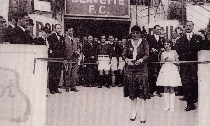 Dans les tribunes, des notables à la pelle. L’infortuné président de l’Association des Intérêts de Genève Monsieur Odier ajoute une note comique à la cérémonie : son jet du ballon par avion est un échec complet, cela n’empêchera pas le coup d’envoi de la rencontre inaugurale Servette FC – First Vienna d’être donné !