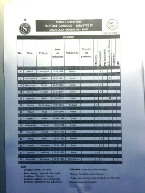 Retrouvez le livescore du dernier match de préparation entre Etoile Carouge et le Servette FC.