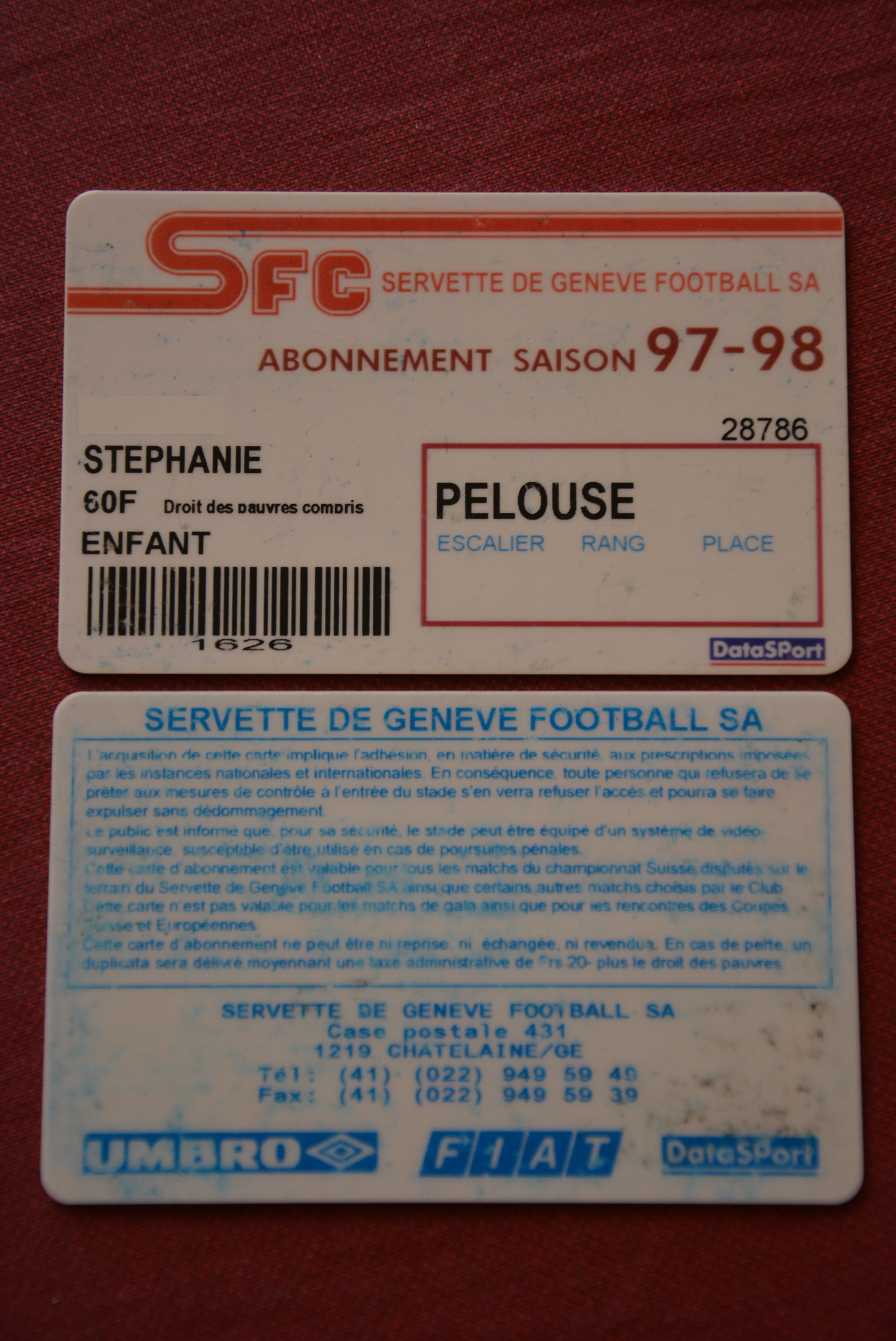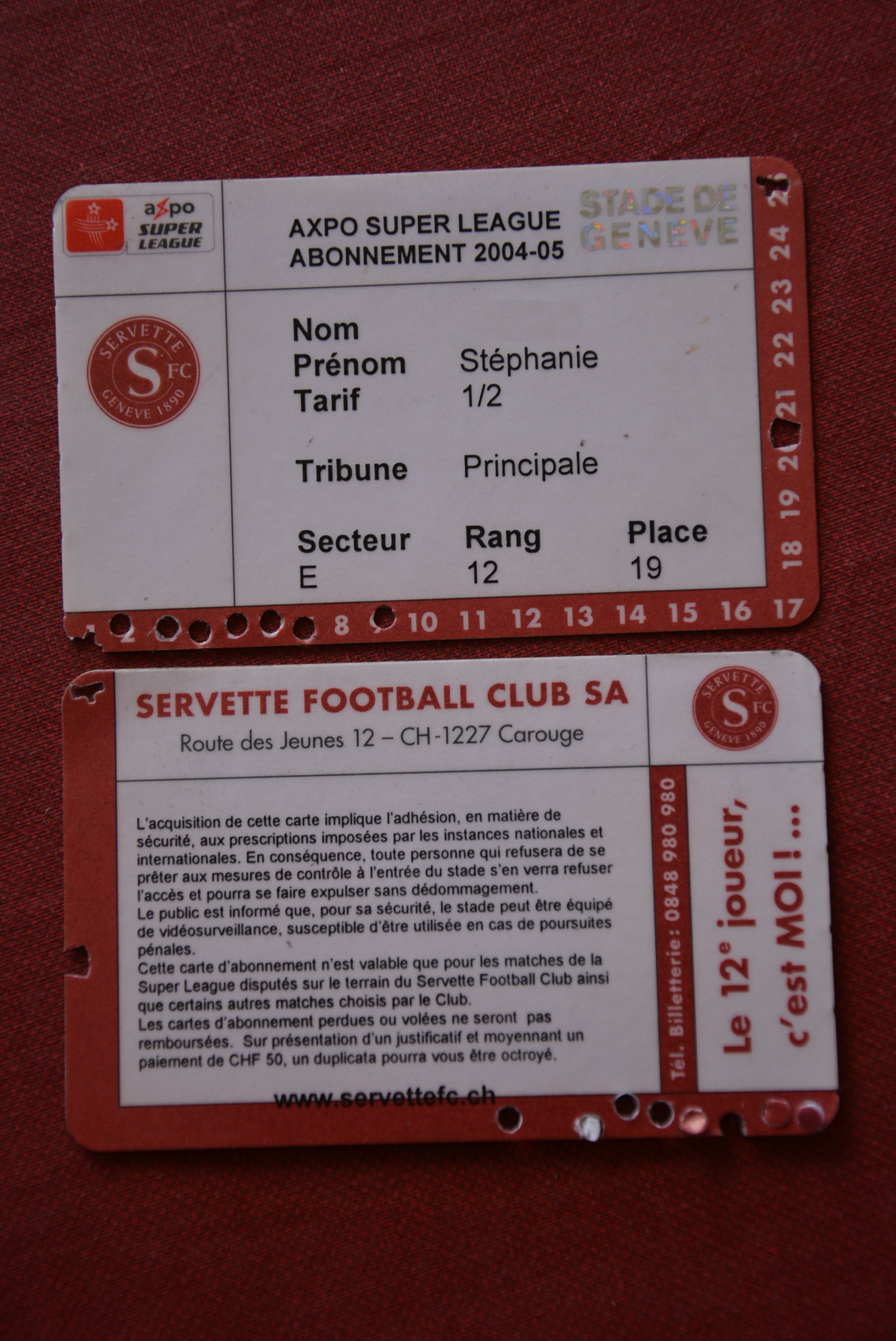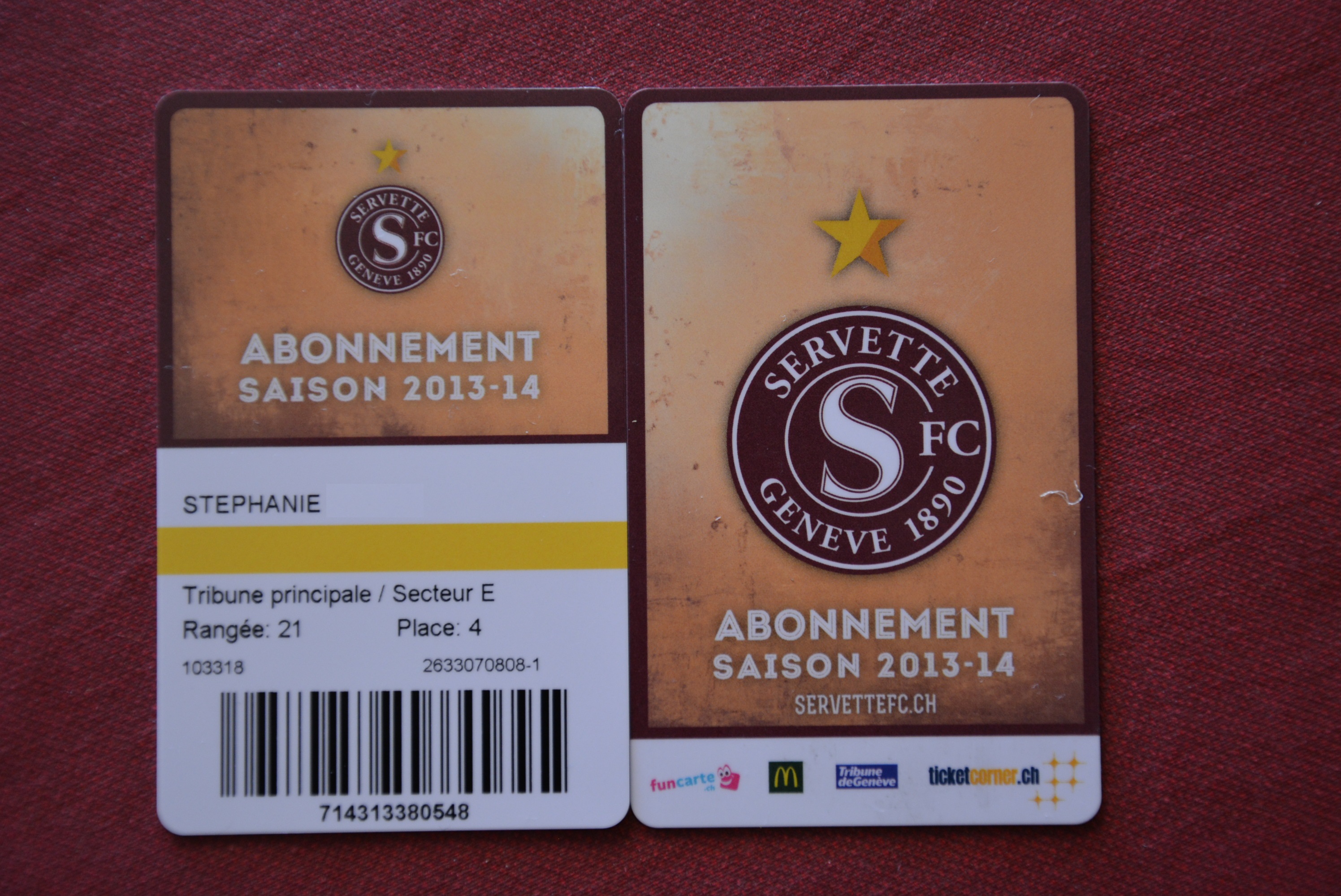 Les Enfants du Servette ont le plaisir de vous faire partager les collections des abonnements de Stéphanie et de Raphaël.
