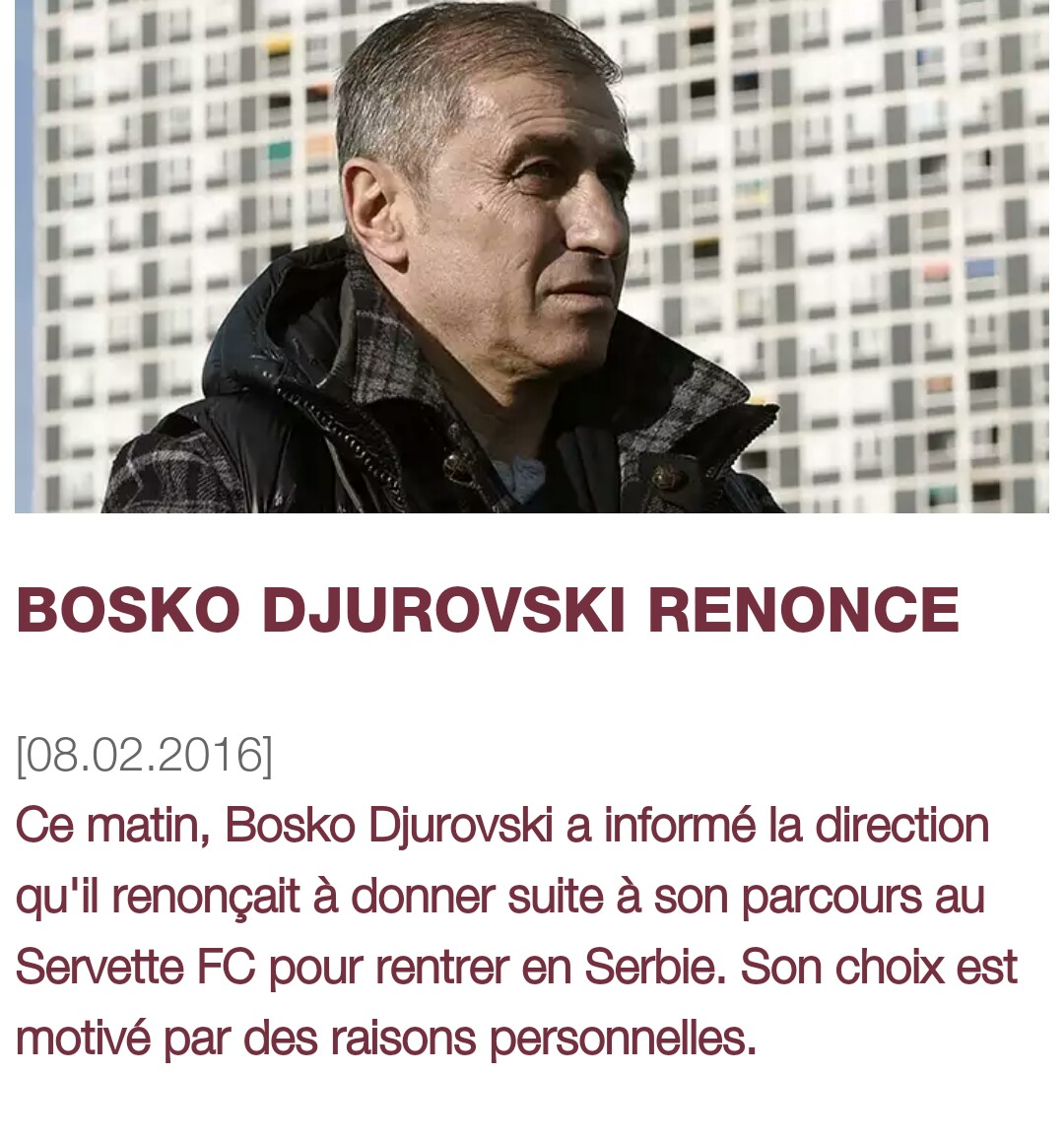 on remarquera quand même que beaucoup de « non-genevois » partent en courant du club: Cooper, Vonlanthen, Pacar, Hebib et maintenant Djurovski…