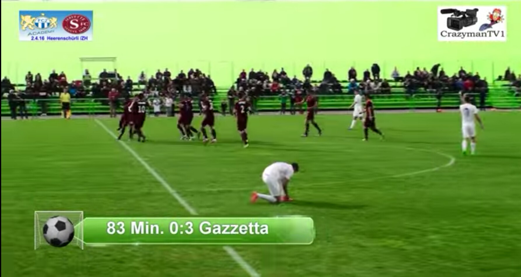Un véritable »Traumtor » digne de la Bundesliga à montrer dans toutes les écoles de football ! Didier, pour le site officiel du SFC, l’a fait savoir aux internautes : « GGGGGOOOOALLLLLLL de Gazzetta ! Immense demi-volée de 35m du pied qui termine comme une lettre à la poste sous la latte de Baumann pour le 3-0. »