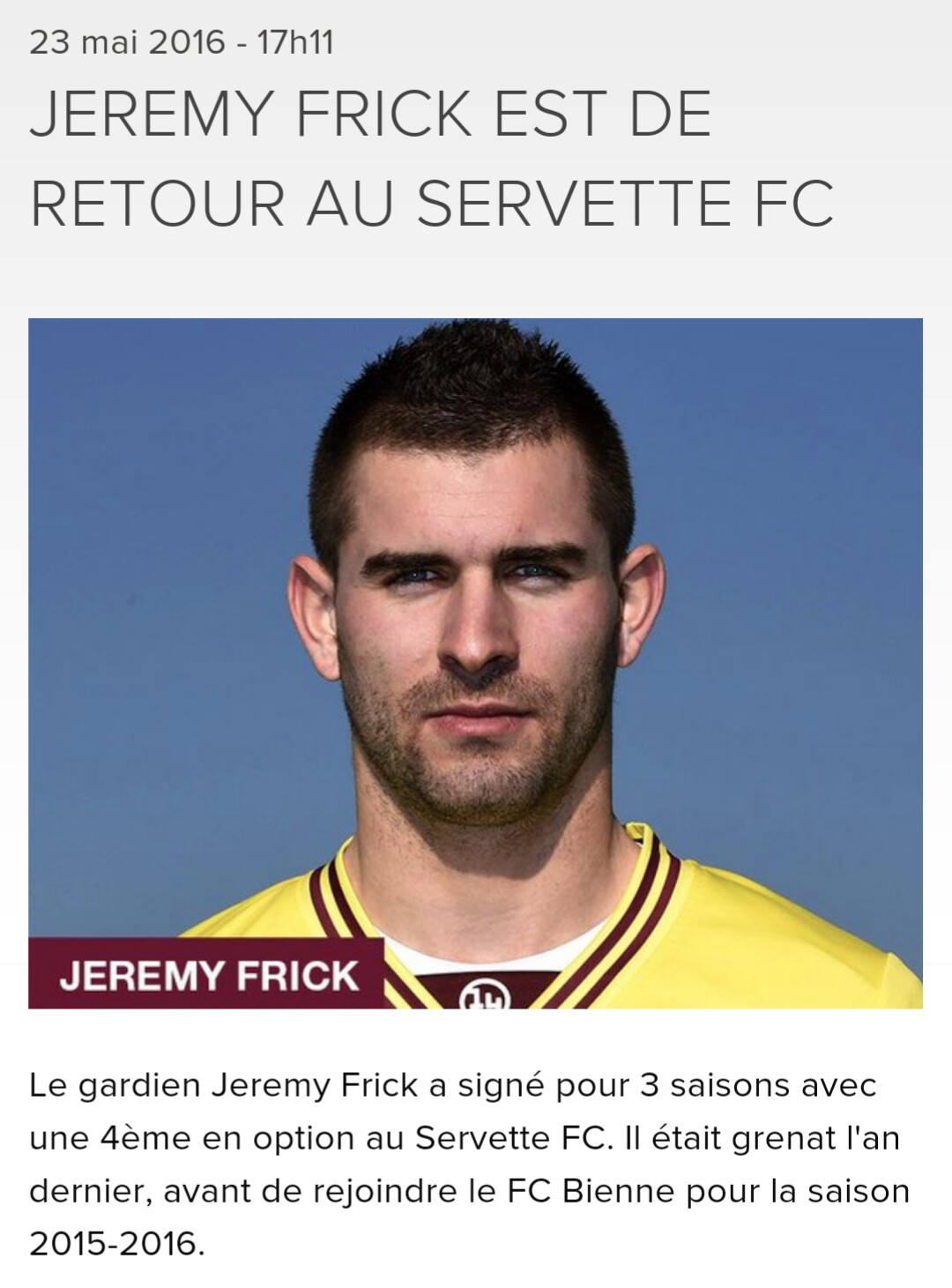 C’était dans l’air depuis un moment, c’est Leman Bleu qui le confirme, Jérémy Frick est bien de retour au Servette FC…