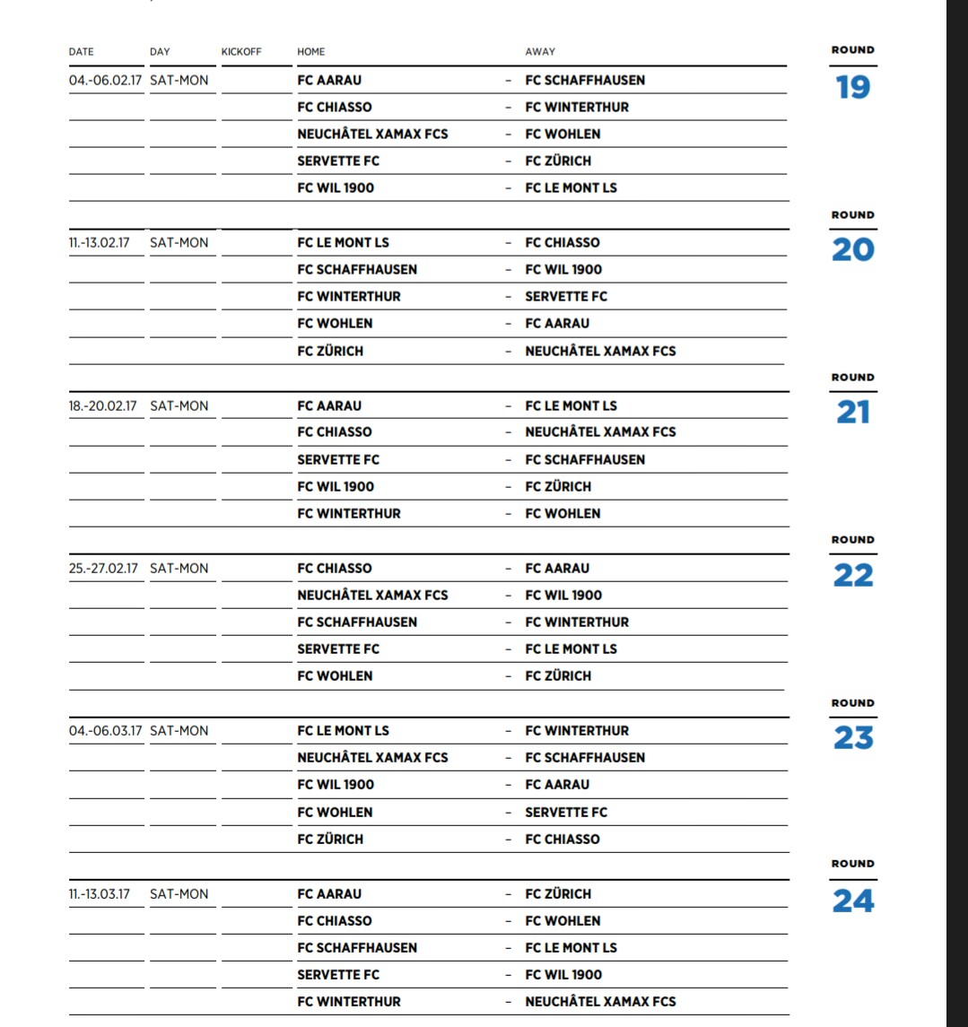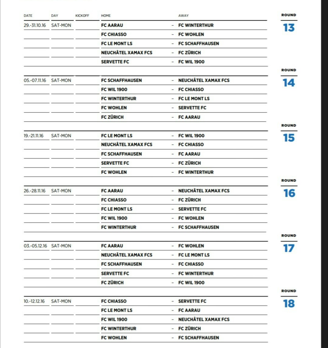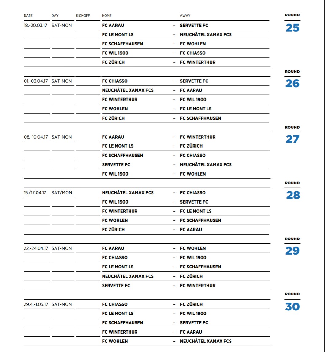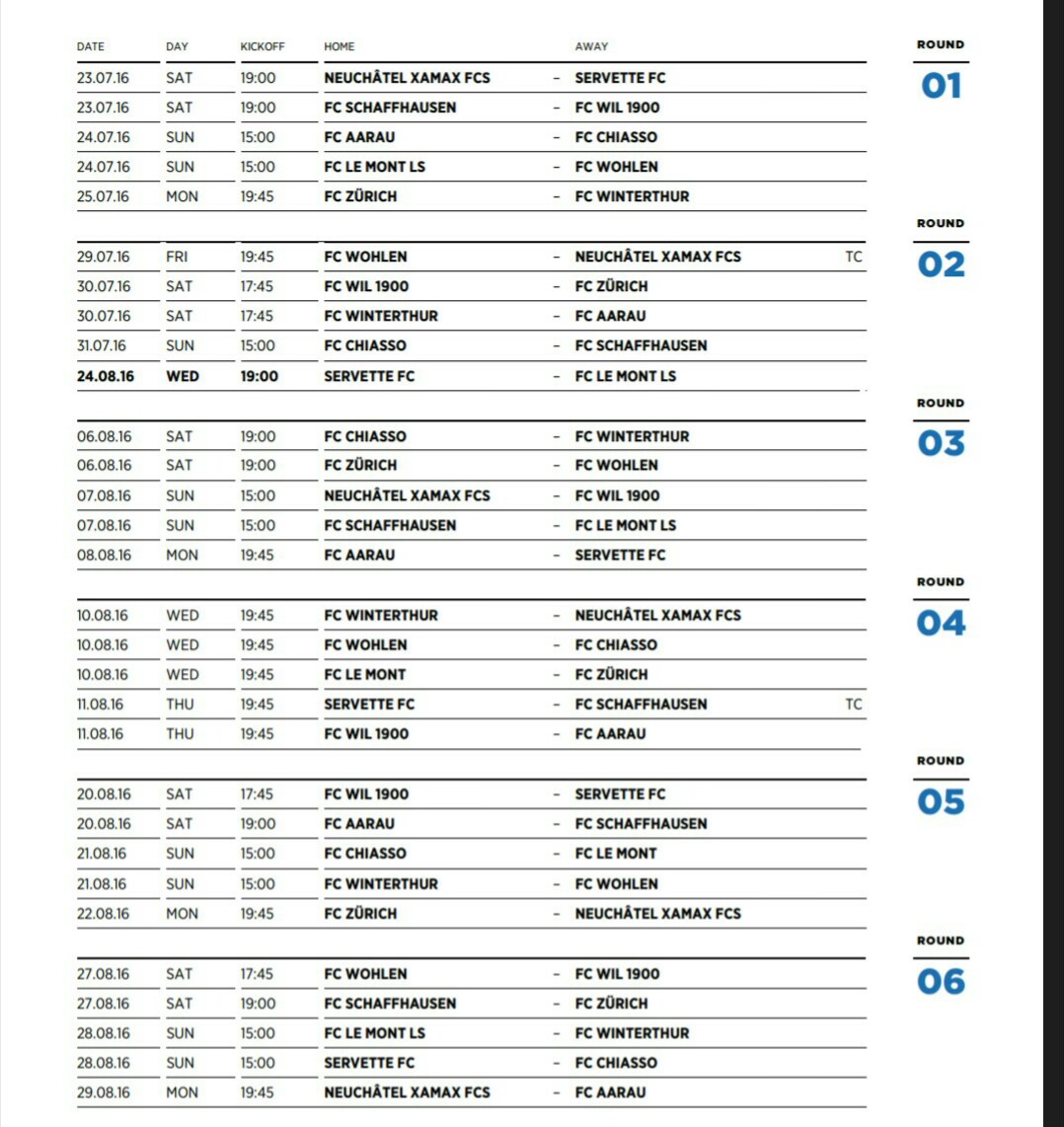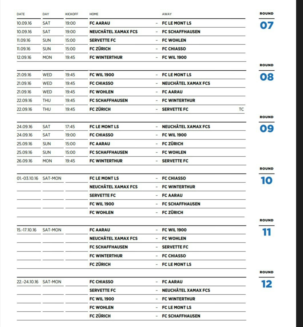 Début en championnat difficile pour les Grenat qui débuteront contre Neuchâtel, Aarau Schaffhouse et Wil!!!!