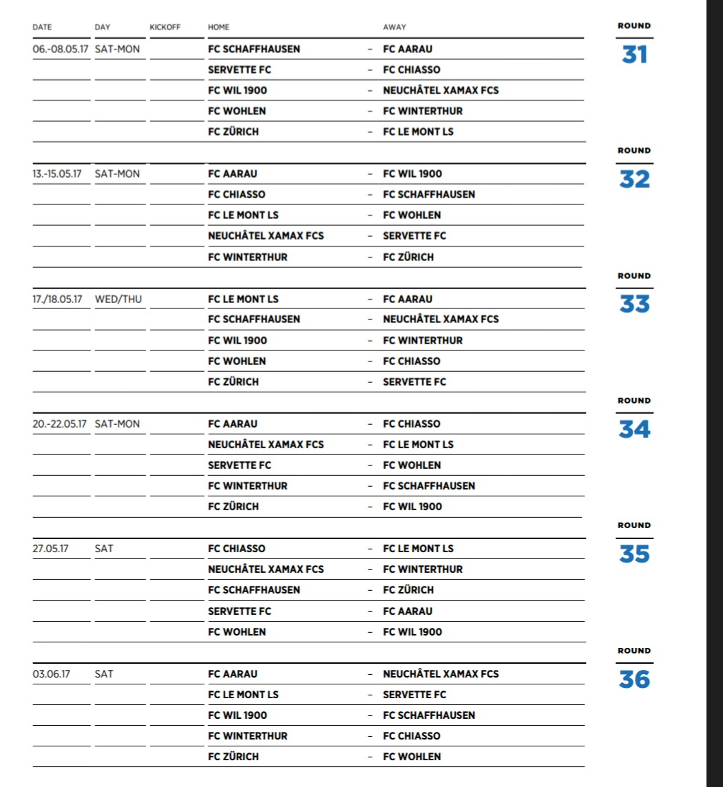 2. …et pas vraiment une bonne idée le match contre Xamax début juillet en guise de préparation, vu le calendrier ci-dessus!