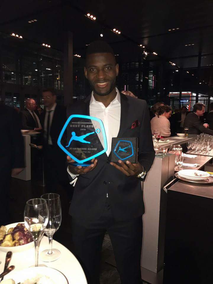 Jean-Pierre Nsame avec ses deux trophées de la soirée! Meilleur joueur de Brack.ch Challenge League et dans la BCL Dream Team.