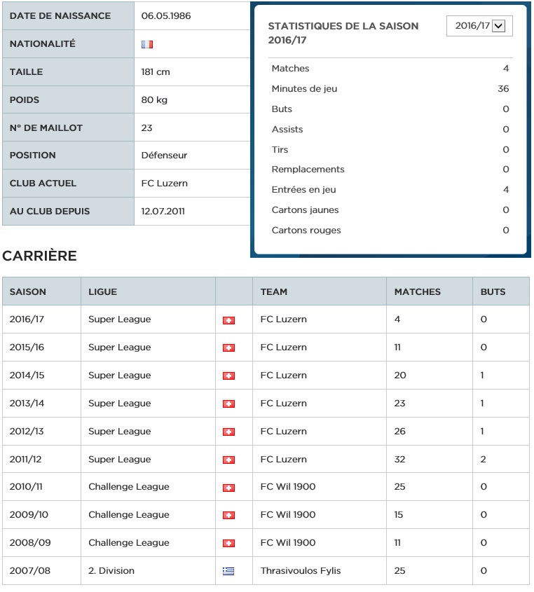 Le gars a foutu son début de carrière en l’air avec une conduite assez légère au Havre. Après un passage en Grèce, il a su rebondir en Suisse alémanique. Puis suite à quelques pépins physique, il s’est fait piquer sa place.