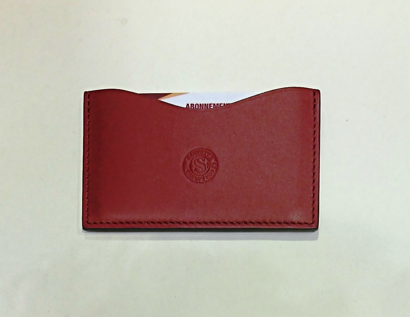 Après les Mugs, les polos, t-shirts, casquettes et ceintures estampillées EdS, nous vous avions proposé une première écharpe aux couleurs du Servette FC! Aujourd’hui, découvrez le porte-carte et le porte-clef en cuir aux couleurs du SFC! Précisons que ces deux produits sont entièrement réalisés à la main en France par un artisan officiant également pour des grandes Maisons du luxe comme Hermès ou Berluti. Nous sommes donc loin de produits de mauvais qualités fabriqués dans des contrées lointaines…