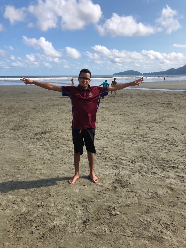 Caio : Bonjour (bom dia en portugais) je m’appelle Caio Vinícius, j’ai 19 ans, je suis brésilien, né à Santos état de São Paulo (une grande région du Brésil connue avec une population de plus de 45 millions qui est aussi une grande puissance économique).