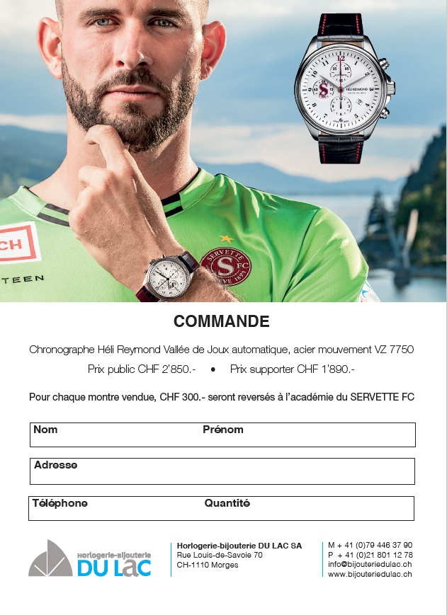 Notez que pour chaque montre vendue, CHF 20.- seront reversés à l’académie du Servette FC