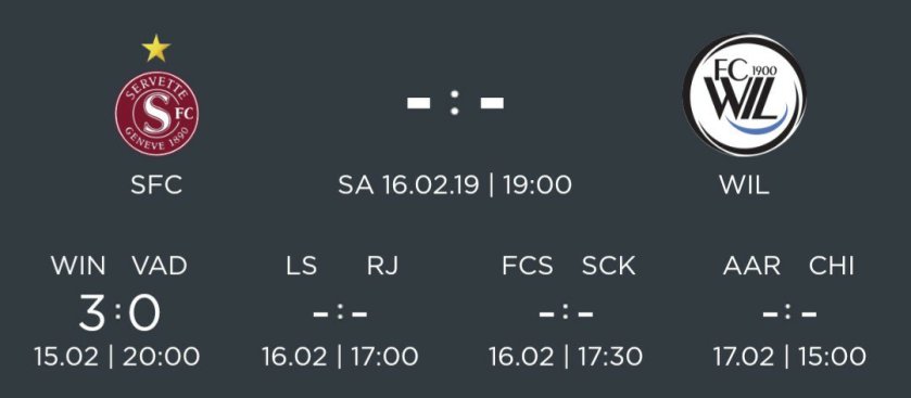 Attention plusieurs clubs restent très dangereux : LS, Aarau et Winti voir même Wil. Il est vraiment important de gagner ce soir pour éloigner Wil et relancer la machine.